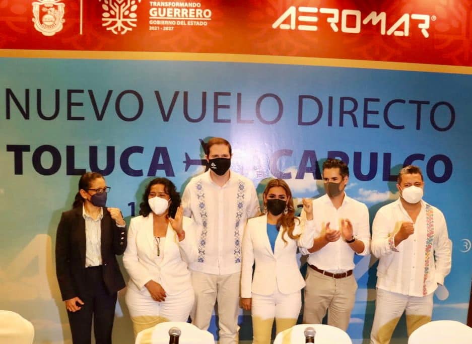 Acapulco, 18 de octubre de 2021. La gobernadora, Evelyn Salgado Pineda, anunció la apertura del nuevo vuelo directo Toluca-Acapulco, acción que refleja el compromiso del estado con el sector turístico y la iniciativa puesta en marcha para Transformar Guerrero.